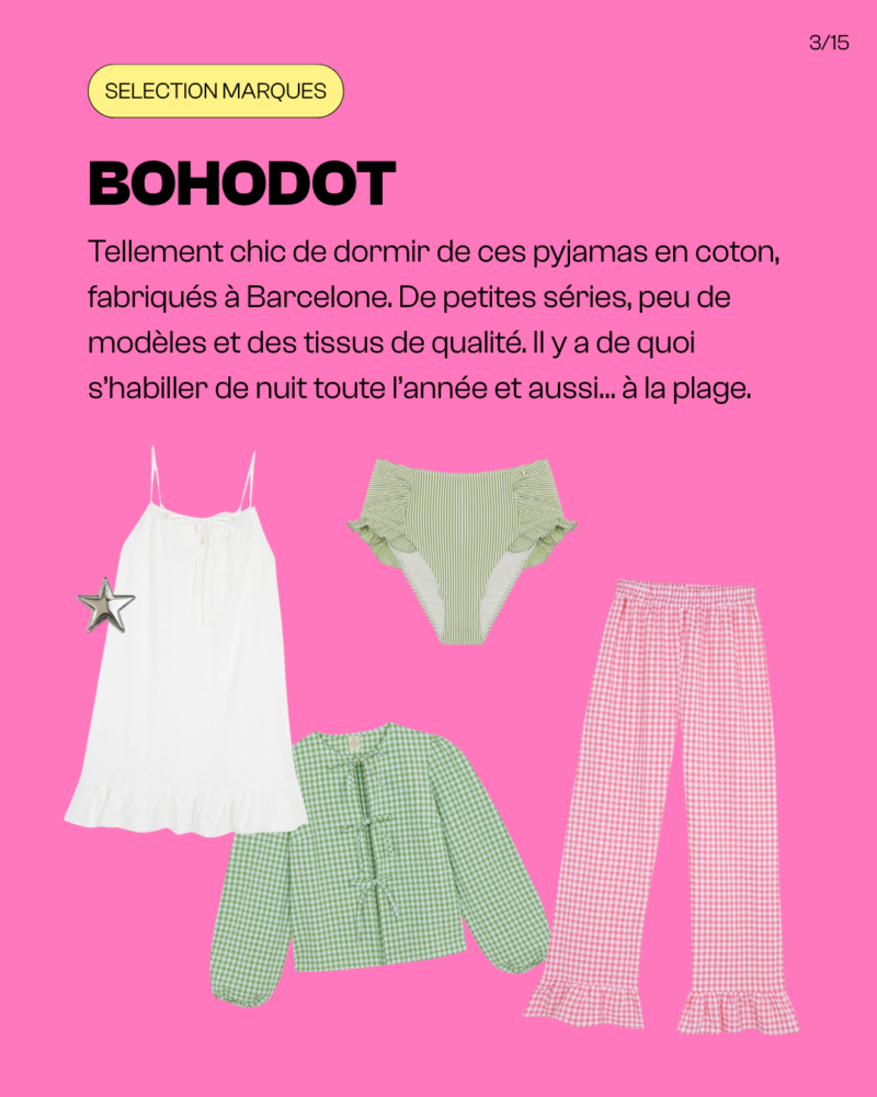 Tellement chic de dormir de ces pyjamas en coton, fabriqués à Barcelone. De petites séries, peu de modèles et des tissus de qualité. Il y a de quoi s’habiller de nuit toute l’année et aussi… à la plage.