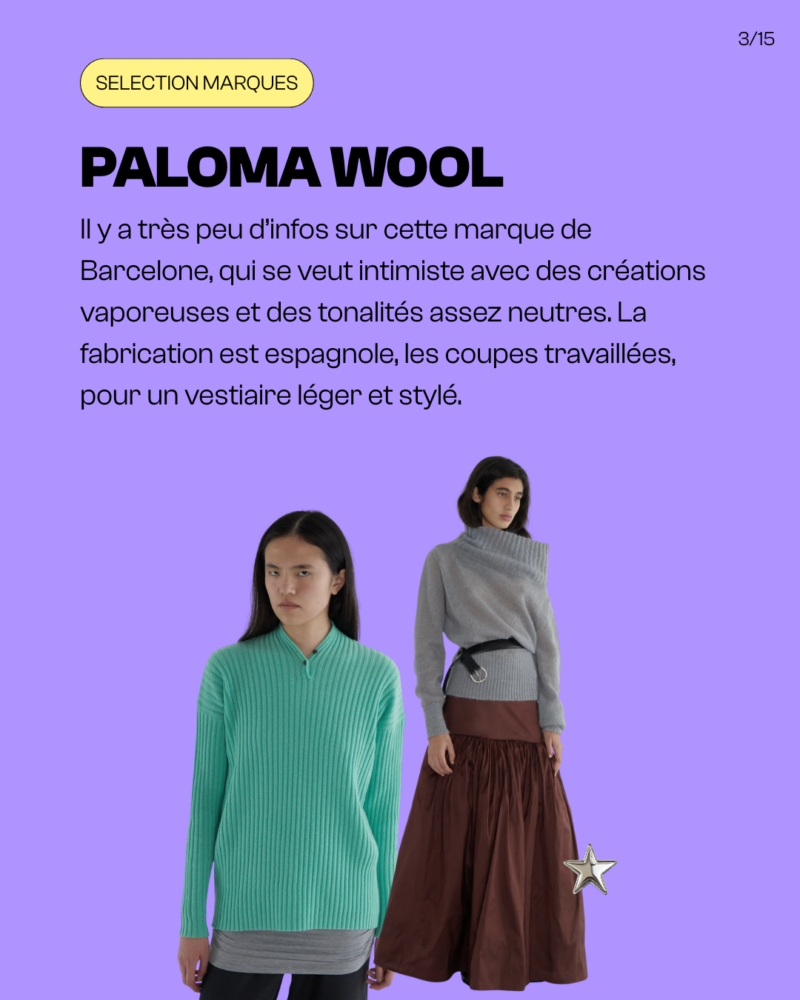 Il y a très peu d’infos sur cette marque de Barcelone, qui se veut intimiste avec des créations vaporeuses et des tonalités assez neutres. La fabrication est espagnole, les coupes travaillées, pour un vestiaire léger et stylé.