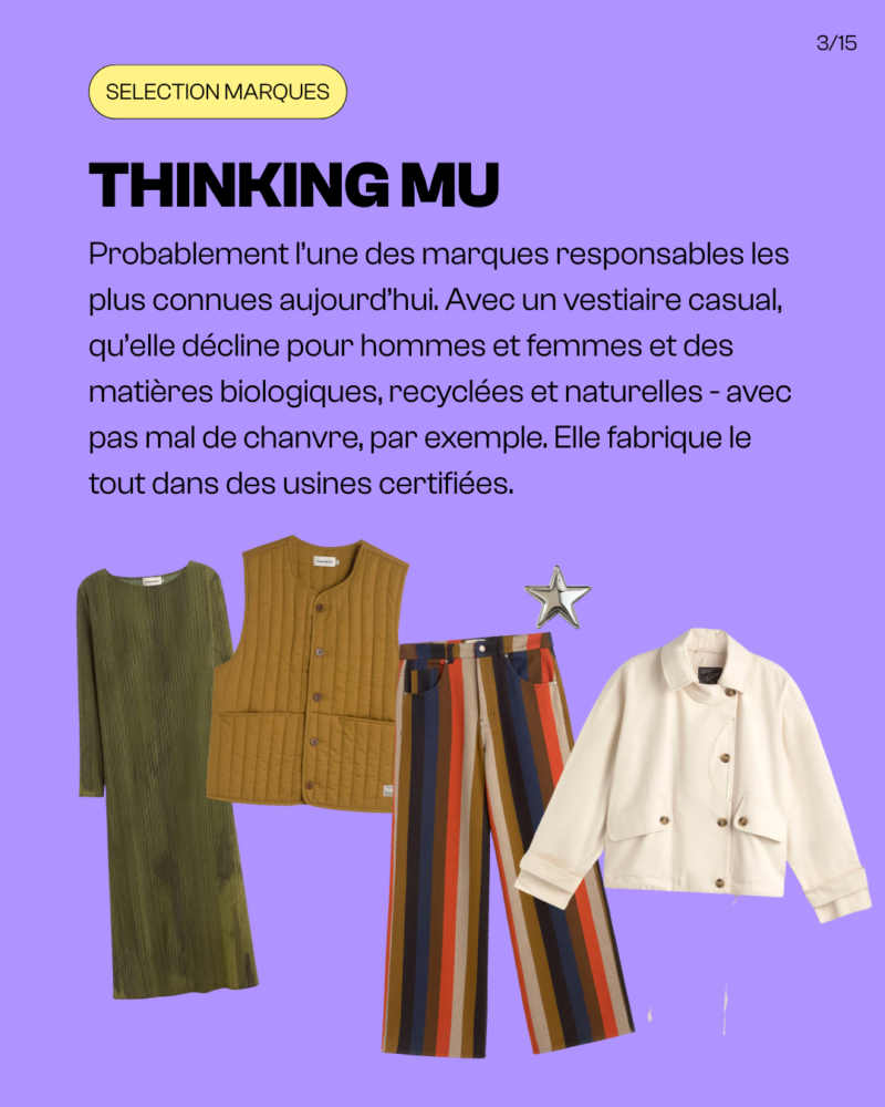 Probablement l’une des marques responsables les plus connues aujourd’hui. Avec un vestiaire casual, qu’elle décline pour hommes et femmes et des matières biologiques, recyclées et naturelles – avec pas mal de chanvre, par exemple. Elle fabrique le tout dans des usines certifiées.